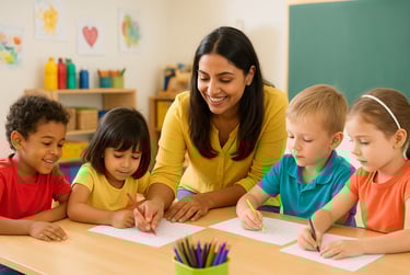 At Shanti Kids Preschool, our teaching philosophy is built around one simple belief — every child learns best through love, play, and discovery. Our pedagogy combines research-based early childhood education methods with a joyful learning environment that nurtures curiosity, confidence, and creativity.